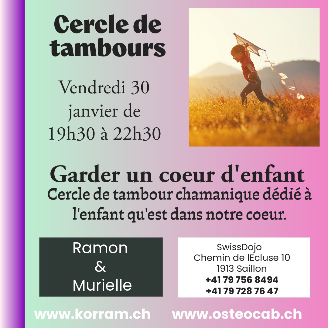 Un appel vibrant pour réveiller l’enfant du cœur, retrouver la joie, la spontanéité et la sensibilité oubliées, et laisser le rythme du tambour nous ramener à l’essentiel, là où le cœur bat librement.